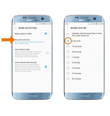 - CHANGE LOCK SCREEN TIMEOUT: From the Lock screen and security screen, select Secure lock settings. Enter the backup screen lock.