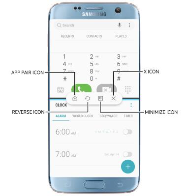 - You will now be able to navigate two applications at once. To add an App pair to the home screen, select the App pair icon. To reverse the apps from top to bottom, select the Reverse icon. To create a smaller screen inside of a desired app, select the Minimize icon to create a window overlay on top of an app. To close an app, select the X icon.