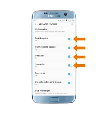 - ACCESS ADDITIONAL MOTIONS & GESTURES: Swipe down from the Notification bar, then select the Settings icon. Select Advanced features.