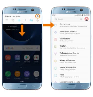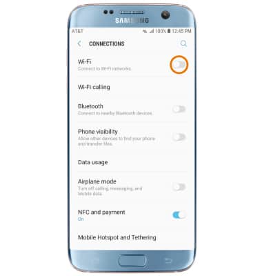 - TURN ON/OFF WI-FI: Swipe down from the Notification bar, then select the Settings icon. Select Connections.