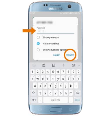 - If connecting to a secure network, enter the Wi-Fi password then select CONNECT.
