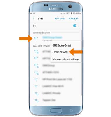 - FORGET NETWORK: From the Wi-Fi screen, select and hold the desired network name, then select Forget network.