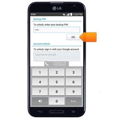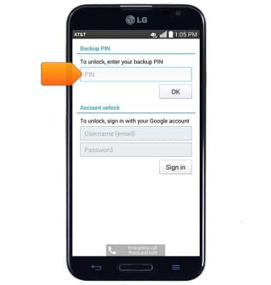 - To unlock the device with the established backup PIN, tap the PIN field, and enter the required backup PIN.