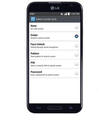 - Tap the desired screen lock type, then follow on-screen prompts to complete setup.