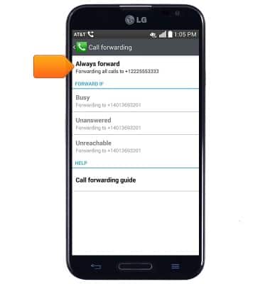 - To enable call forwarding, tap Always forward.