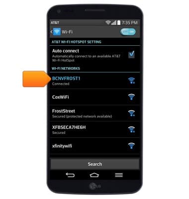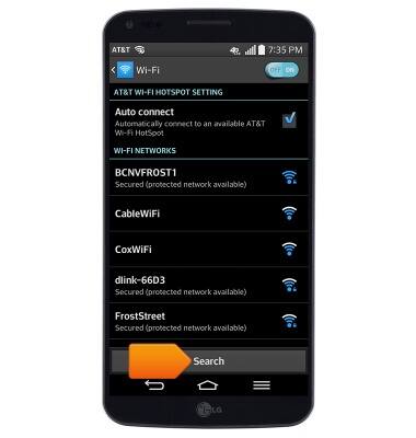 - The device will scan for Wi-Fi networks automatically. To refresh, tap Search.
