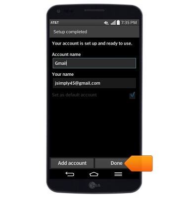 Note: If multiple accounts are configured, tap to check 'Set as default account' if desired.