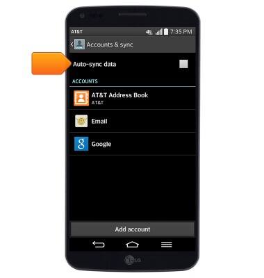 Note: From the home screen, press the Menu key > tap 'All settings' > tap the 'General' tab > tap 'Accounts & sync' > tap 'Auto-sync data'