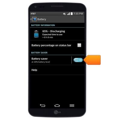 Note: From the home screen, press the Menu key > tap 'All settings' > tap the 'General' tab > tap 'Battery' > tap the 'Battery saver' switch