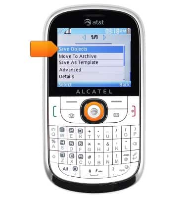 - Scroll to 'Save Objects', then press the Center nav key and follow on-screen prompts.