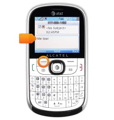 - To reply to a message, scroll to the Message field and enter the desired message. Press the Center nav key to send.