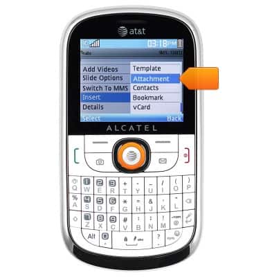 - Scroll to 'Attachment', then press the Center nav key and follow on-screen prompts.