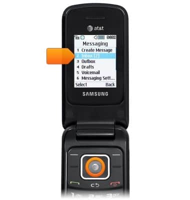 - To view the inbox, scroll to 'Inbox', then press the Center nav key.