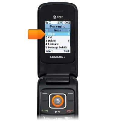 - To reply to or delete a message, from the inbox, scroll to the desired message then press the Left soft key.