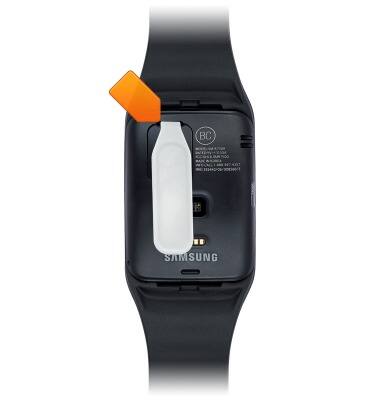 - Place the watchband over the watch, then stretch it over the face to seat the Gear S into the watchband.