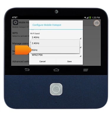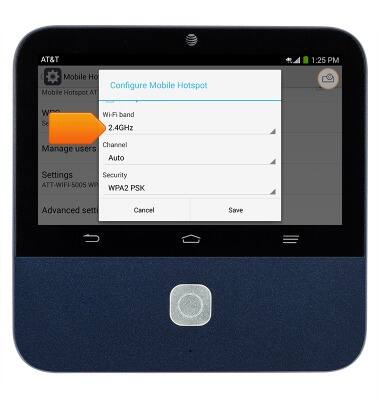 Note: 2.4 GHz uses less power and is longer ranged than 5 GHz, but 5 GHz can provide higher speeds with less interference. Connected devices must support the selected Wi-Fi band to be able to successfully connect to the hotspot Wi-Fi.