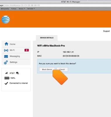 - To block devices from connecting to your hotspot, login to the AT&T Wi-Fi Manager from a device connected to the Unite Express Network.