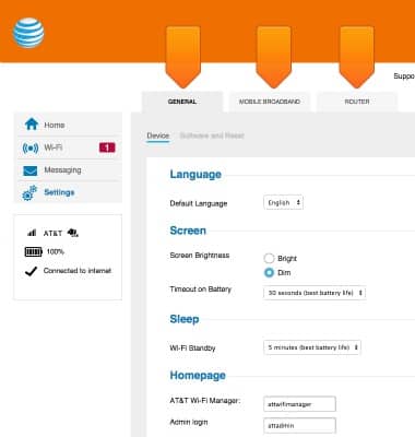 - Click the desired tabs to alter Wi-Fi, Network, and Router settings.
