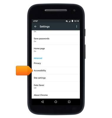 - To adjust the text size, from the Chrome Settings page, tap Accessibility.