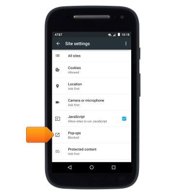 - To enable or disable pop-ups, from the Chrome Settings page, tap Site settings.