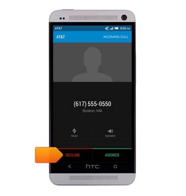 - While receiving a call, tap DECLINE to reject the incoming call.