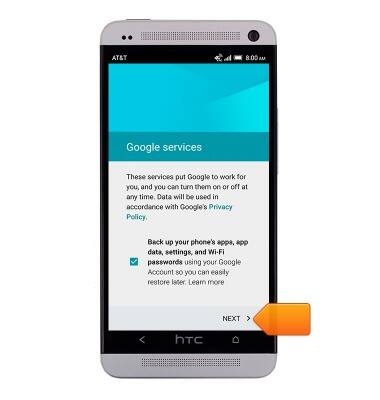 - Scroll to view the Google services, then tap NEXT.