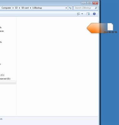 Note: Start icon > Computer > Device > Internal memory > LG Backup folder