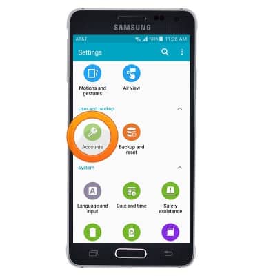 - Scroll to "USER AND BACKUP", then tap Accounts.