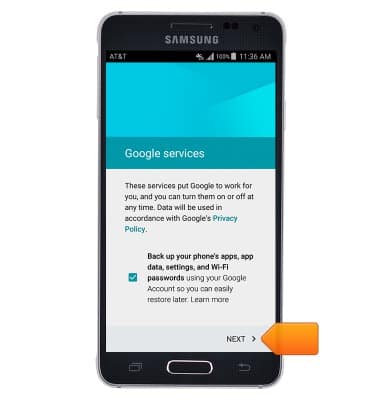 - Adjust the Google services as desired, then tap NEXT.
