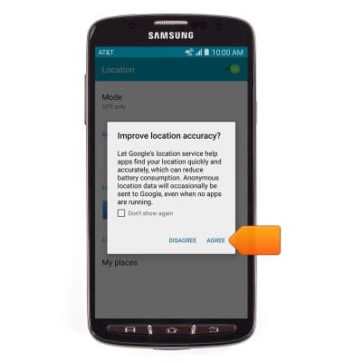 - If prompted to turn on GPS, tap OK > Location switch > Agree > Press the Back key.