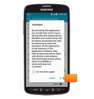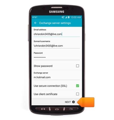 - Adjust Exchange server settings as desired, then tap NEXT.