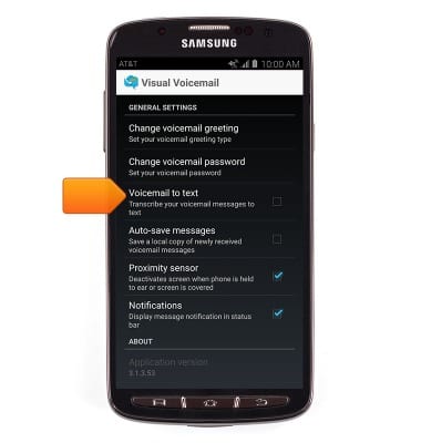 - Tap the Voicemail to text checkbox to toggle Voicemail to text on or off.