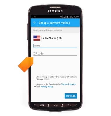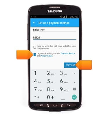 - Agree to the Google Wallet Terms of Service and Privacy Policy, then tap CONTINUE.
