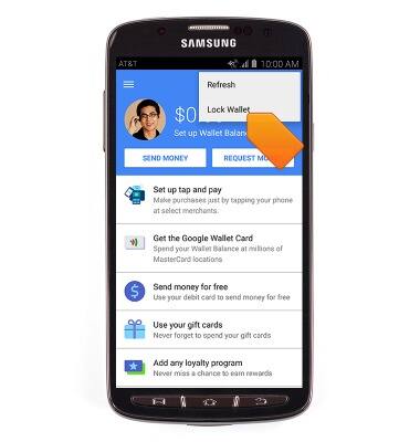 - To suspend your Google Wallet, tap the Menu icon, then tap Lock Wallet.