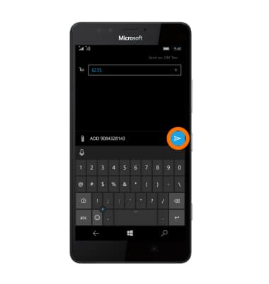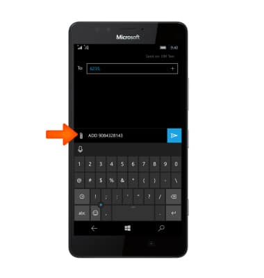 - Enter ADD 5555555555 (your device phone number) in the message field.