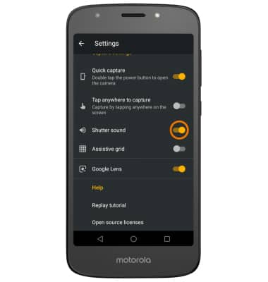 - TURN ON/OFF SHUTTER SOUND: Scroll to and select the Shutter sound switch.