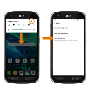 1. If a restart does not resolve your issue, you may need to perform a Factory data reset (Master reset). This will erase all data on your device and restore it to factory settings. To Factory data reset your device, swipe down from the Notification bar then select the Settings icon > General tab > scroll to and select Reset > select Factory data reset.