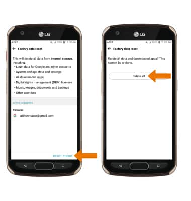 2. Select RESET PHONE, then select Delete all to confirm.