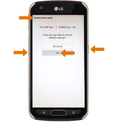 3. Release both buttons when you see Factory data reset at the top of the screen. Press the Volume down button to highlight Yes, then press the Power/Lock button to select.