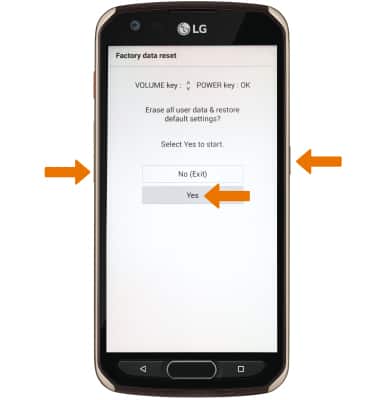 4. Press the Volume down button to highlight Yes again to confirm, then press the Power/Lock button to select and begin the reset process.