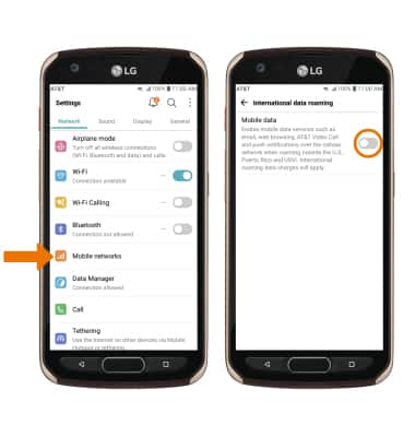 TURN ON/OFF INTERNATIONAL DATA: From the Network tab in Settings, select Mobile networks > International data roaming > Mobile data switch.