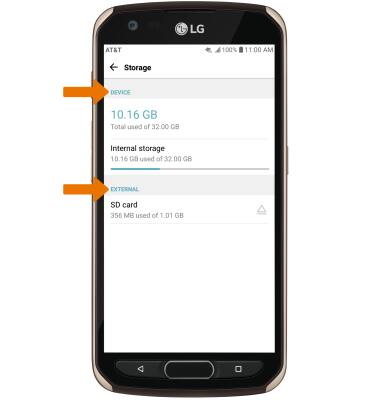 1. Swipe down from the Notification bar then select the2. Available storage will be listed under DEVICE. Available memory card space will be listed under EXTERNAL.