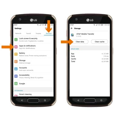 From the Settings screen, select the General tab > Apps & notifications > App info > desired app > Storage > Clear data.