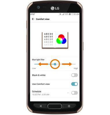 4. Select and drag the Blue light filter slider to the left or the right to manually adjust the level of blue light.