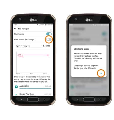 SET A MONTHLY DATA LIMIT: Select the Limit mobile data usage switch, then select OK.