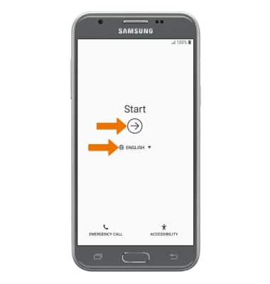 - When turning the device on for the first time, or after a factory reset, you will be walked through a series of prompts to set up your device. Choose the desired language, then select Start.