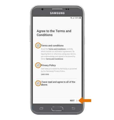 - Review the Terms and Conditions. If you agree, select the desired circles then select NEXT.