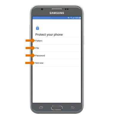 - If you would like to set your screen lock now, select the desired option then follow the on-screen prompts for setup. To proceed without activating device protection features, select Not now.