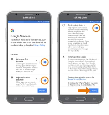 - Review the Google Services prompt, then select the desired switches. When finished, select I AGREE.