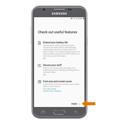 - Review the Check out useful features prompt, then select FINISH to complete the device set up.